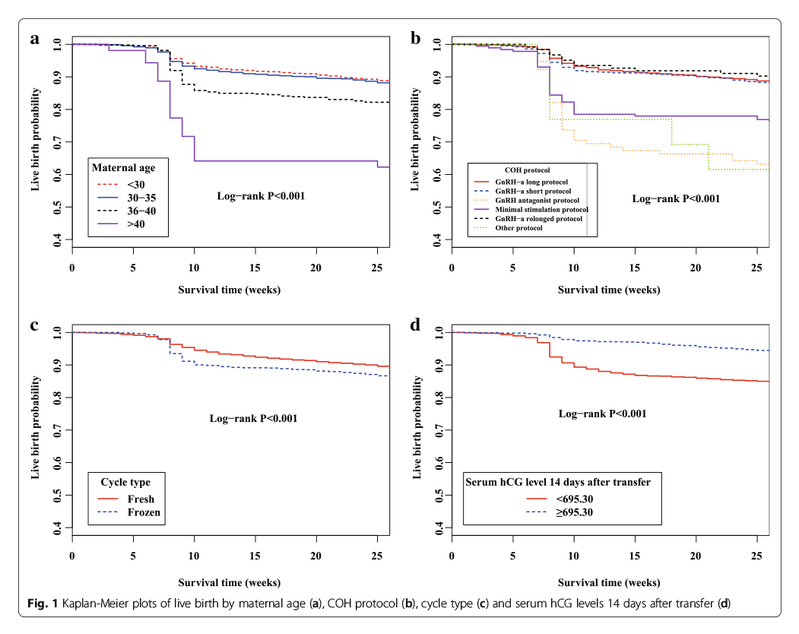 Methods: A retrospective cohort study was launched in two infertility treatment centers in Nanjing and Changzhou including 5485 IVF/ICSI embryo transfer cycles with known outcomes after clinical pregnancy by the end of 2015. Cox proportional hazards regression analysis was performed to estimate the hazard ratios and their 95% confidence intervals. The associations between survival time during pregnancy and demographics and clinical characteristics of clinical pregnancies were estimated using the Kaplan-Meier method and the Log-rank test.